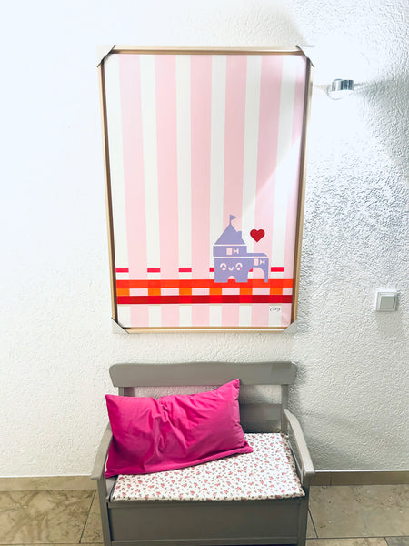 Dieses einzigartige Acrylgemälde (70 × 100 cm) bringt pure Lebensfreude in jeden Raum. Die fröhlichen, modernen Farben und das spielerische Design lassen den Schelmenturm – das ikonische Wahrzeichen von Monheim – in einem völlig neuen Licht erstrahlen.