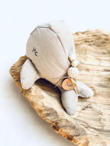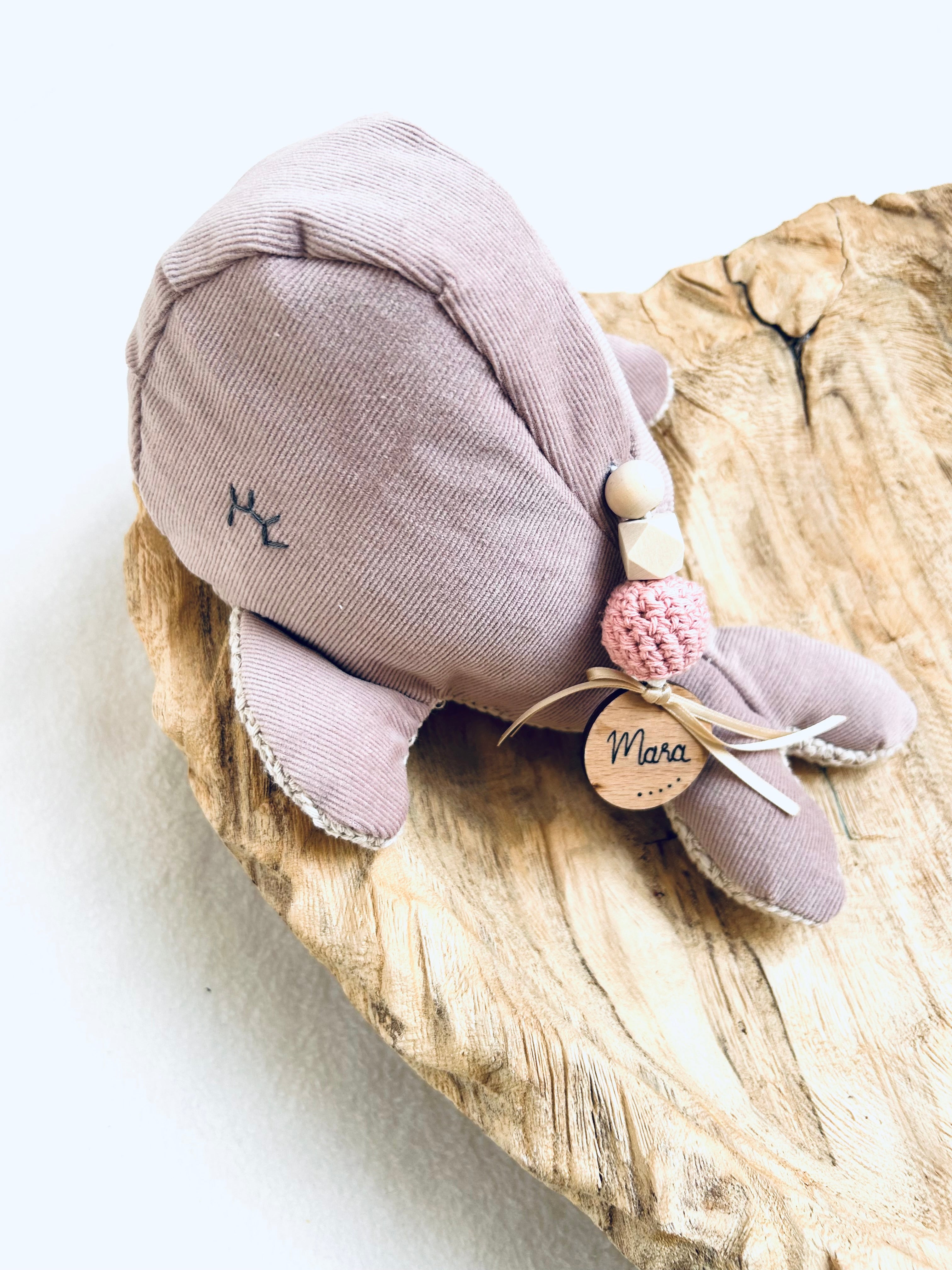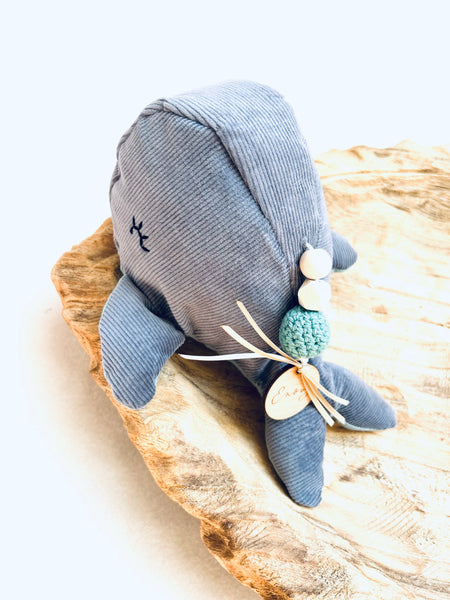 Der Wal kann mit dem Namen des Babys personalisiert werden, so dass er auch als zauberhaftes Geschenk zur Geburt oder zur Taufe genutzt werden kann.
